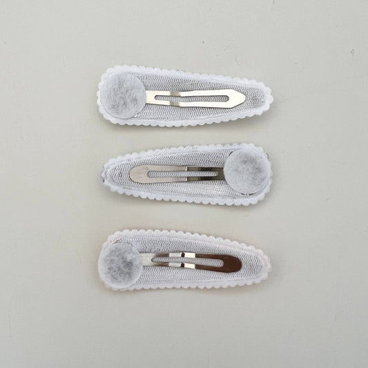 (#1) Fabric Hair Clip Snap Barrettes (2) - White