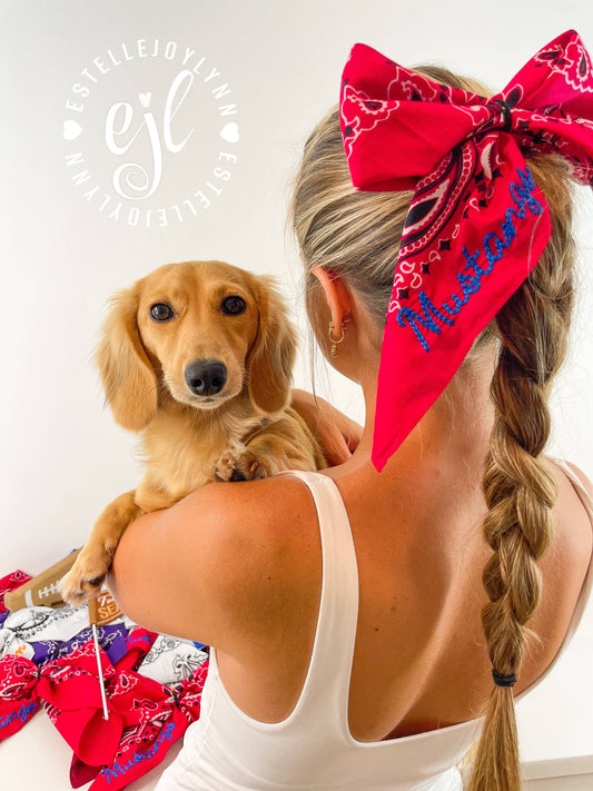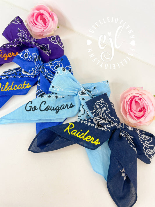 Hair Bandana Bows CUSTOM School Spirit Embroidered