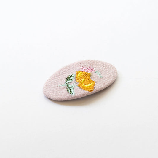 Oval Embroidered Floral Snap Hair Clips | Light Pink & Beige