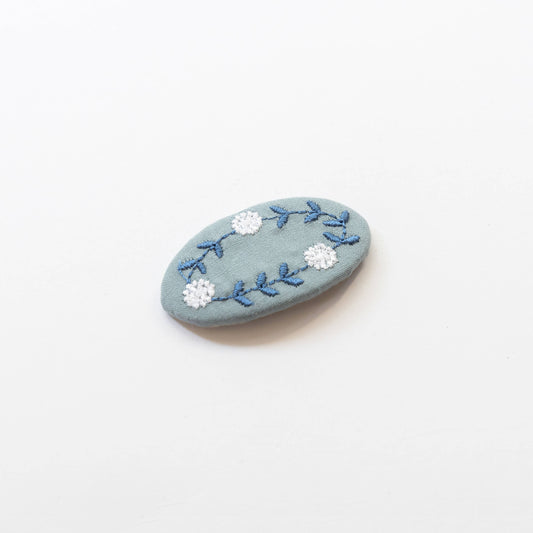 Oval Embroidered Floral Snap Hair Clips | Sky Blue