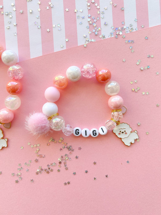 White Puppy Dog Beaded Charm Bracelet With Pom Pom
