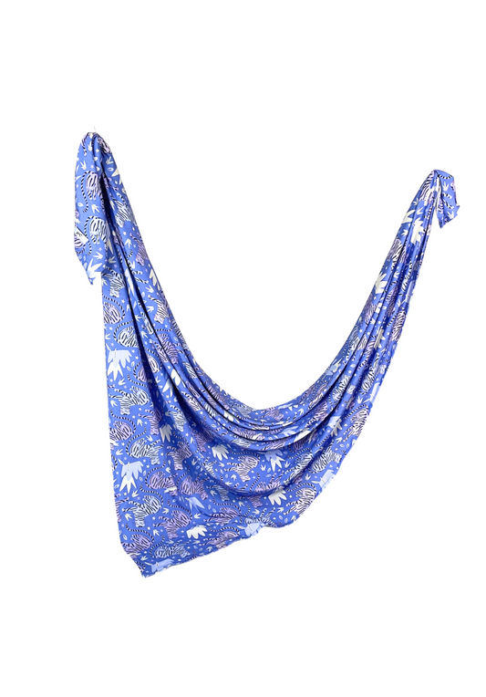 "Cat's Pajamas" Swaddle and Beanie Bundle - Blue