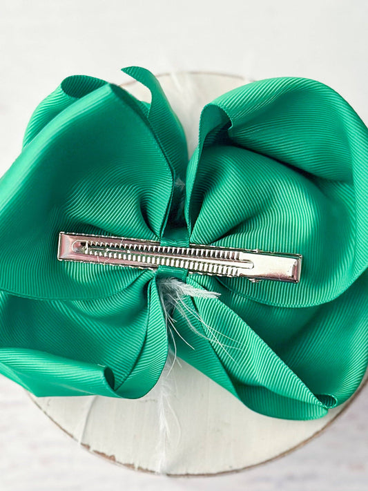 Texas Size Green & White Feather Puff Hair Bow