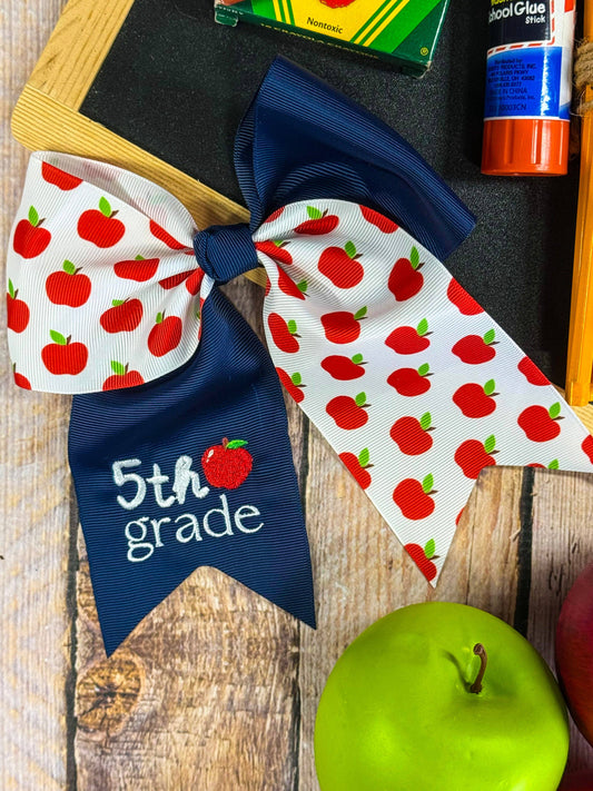 School Grade Embroidered Cheer Bow
