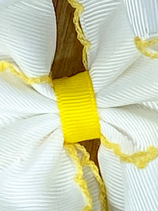 White with Green Moonstitch Hair Bow
