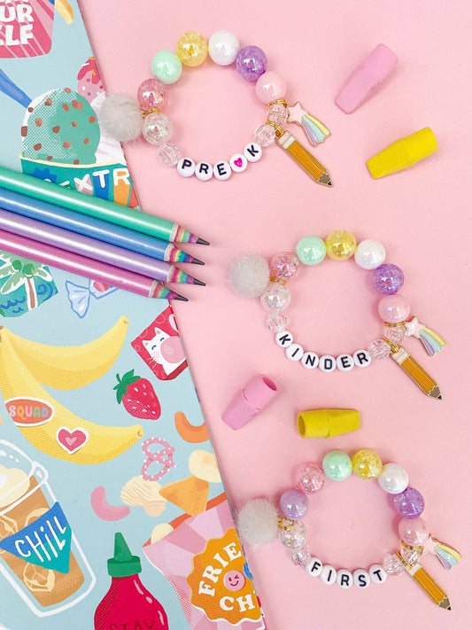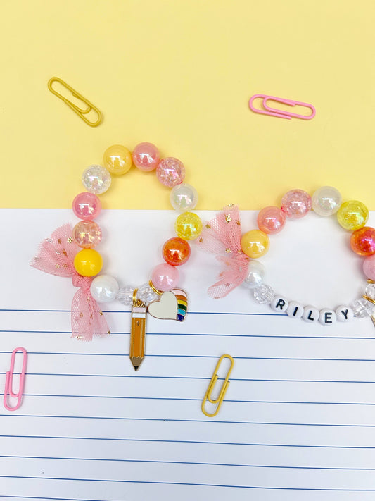 Kids Back to School Pencil and Heart Beaded Charm Bracelet
