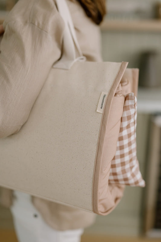 Organic Portable Bedding Set- Brown Gingham