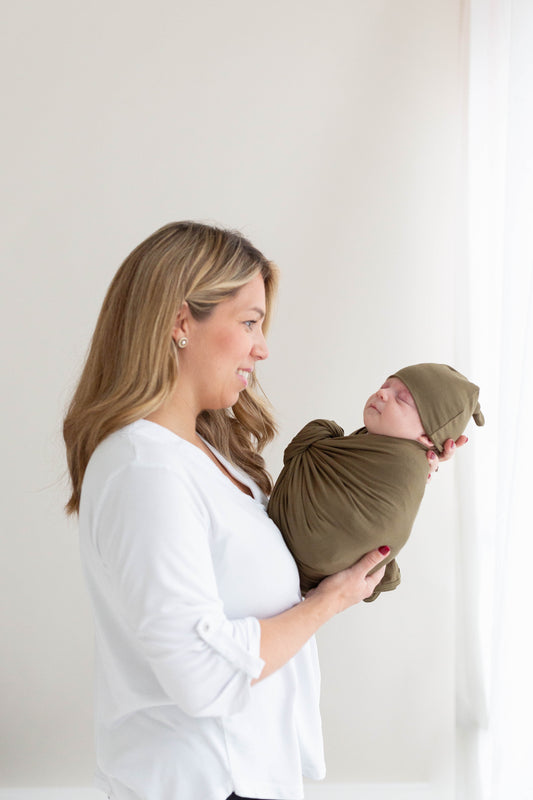 Swaddle Blanket and Hat Set - Army Green
