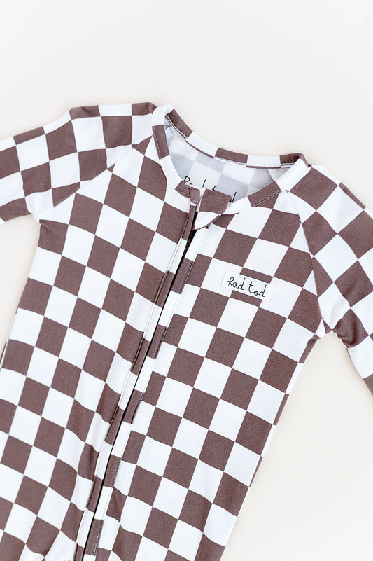 BAMBOO - BLACK CHECKERED SHORT SLEEVE ONESIE