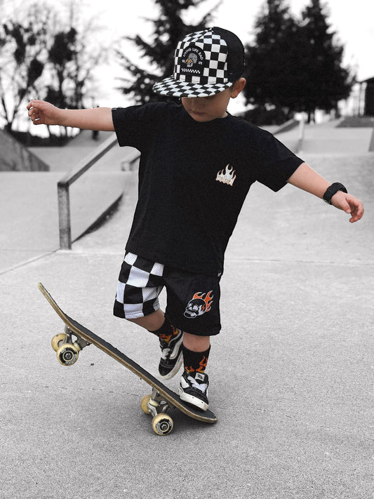 RETRO-WAVE HYBRID BOARD SHORT - RED/ORANGE