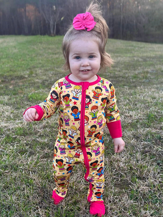 Christmas Character Print Baby Girls Romper with Red Bow Detail