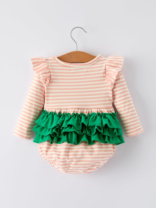 Christmas Tree Smocked Embroidery Stripe Baby Girls Romper