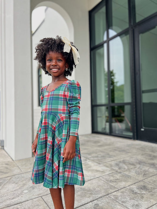 Cute Holiday Dress with Christmas Tree and Snow Prints