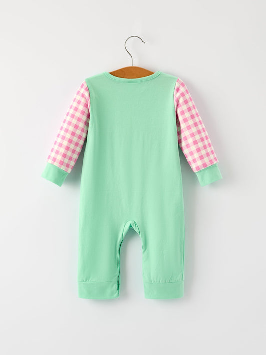Christmas Green Santa Smocking Applique Plaid Baby Girls Romper