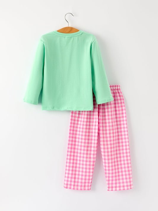Blue Christmas Nativity Pattern Girls Pajamas Set