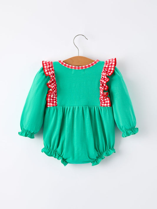 Christmas Candy Cane Embroidery Striped Baby Girl Romper with Pocket Ruffles