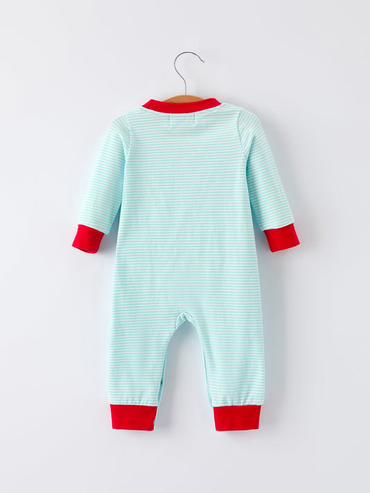 Christmas Santa Candy Cane Cookie Embroidery Baby Boys Striped Romper