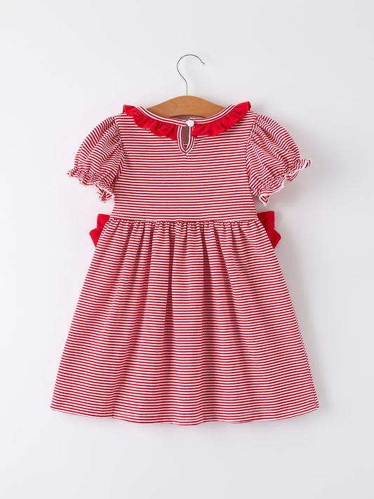 Christmas Candy Cane Embroidery Striped Girl Set with Pocket Ruffles