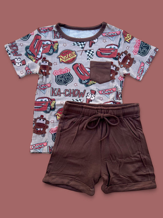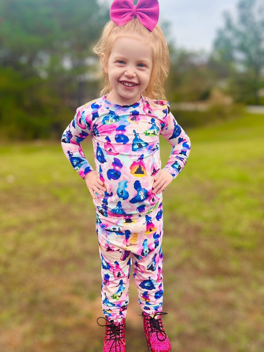 Christmas Girls Pajama Set with Ruffle Detail and Buttoned Top