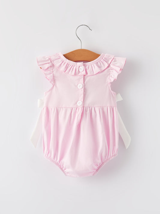 Smocking Easter Embroidered Ruffles Girls Pink Romper
