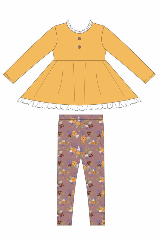 Marigold Floral fall Adele Set (Short or Long Sleeve) Preorder