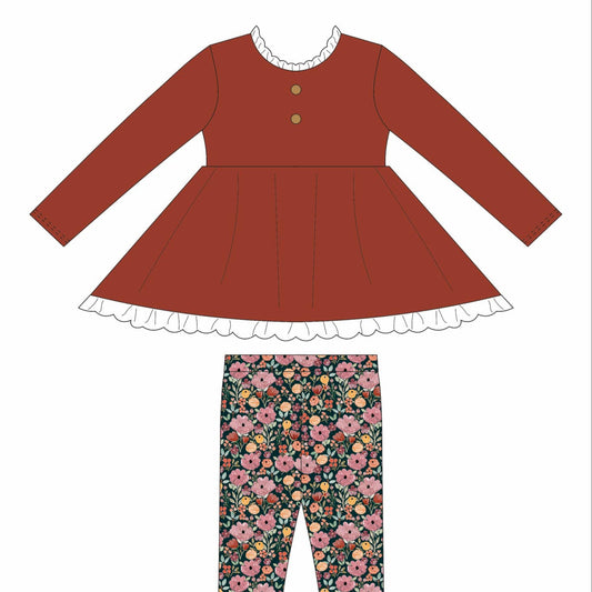 Burnt Orange Floral Fall Adele Set (Short or Long Sleeve) Preorder