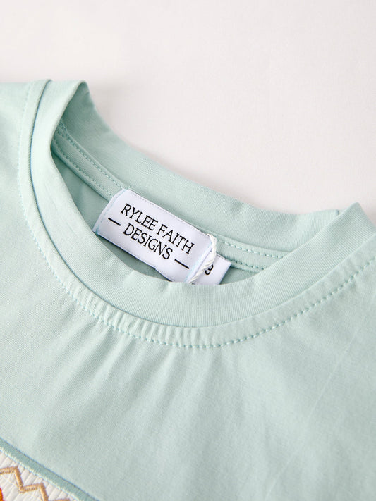 Fall Thanksgiving Smock Embroidered Green Boys Romper