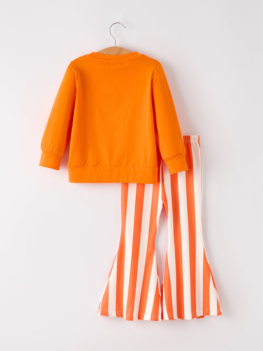 Fall Embroidered Boy Set – Orange Checkered with Halloween Details