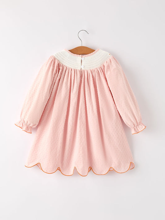 Fall Halloween & Thanksgiving Pumpkin Embroidery Smock Plaid Girls Dress