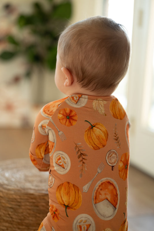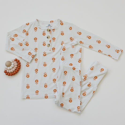 Pumpkin Posie Bamboo Pajamas for Kids - 2pc Henley Set