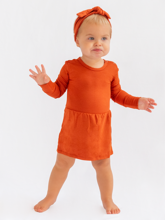 Pumpkin Spice Velvet Ruffle Twirl Dress