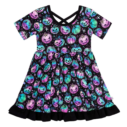 Halloween | Starlight Pumpkins | Toddler & Girls Bamboo Ruffle Twirl Dress
