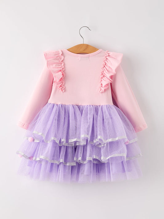 Autumn Thanksgiving Tulle Pink Purple Girls Long Sleeve Dress