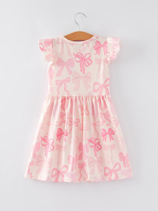 Bow Print Flying Sleeve Girls Dress