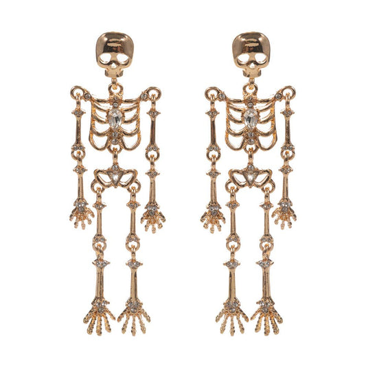 Stone Pointed Metal Skull Dangle Earrings