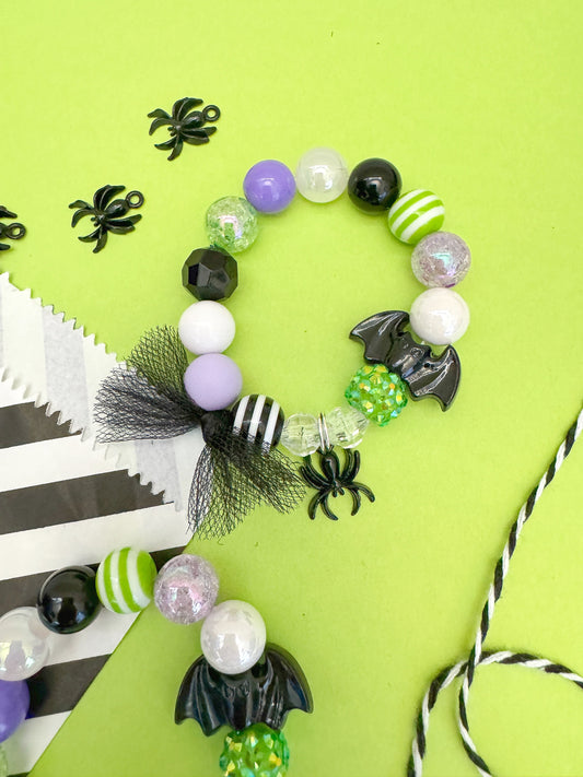 Halloween Spider Bat Charm Bracelet with Tulle, Kids Adult, Personalized, Custom Name