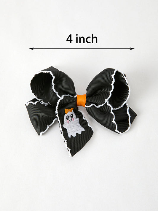 Halloween Ghost Embroidered Black Bow Hairpin