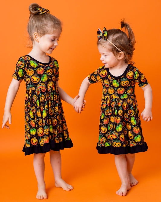Halloween | Spooky Pumpkins | Toddler & Girls Bamboo Ruffle Twirl Dress
