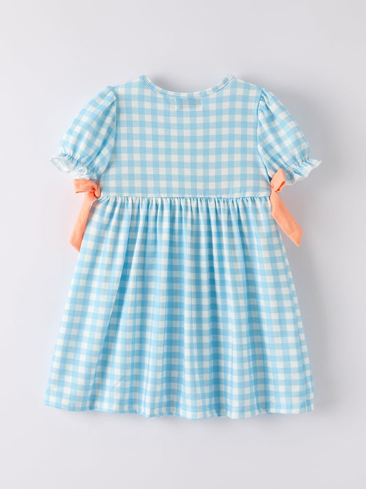 Halloween Pumpkin Embroidery Smocking Blue Plaid Dress