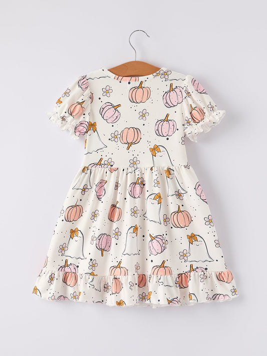 Halloween Pumpkin Ghost Print Cute Girls Dress