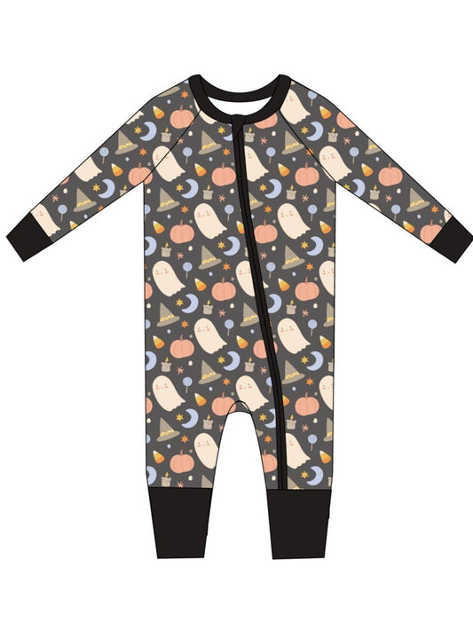 Halloween & Thanksgiving Pumpkin Smock Embroidered Boys Romper