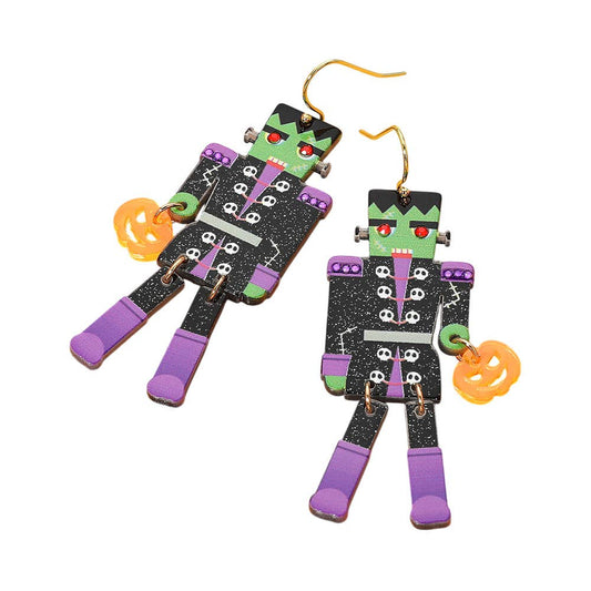 Halloween Monster Frankenstein Pumpkin Dangle Earrings
