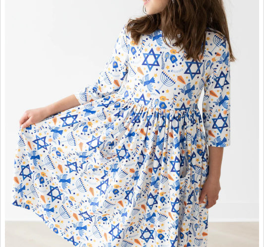 Happy Hanukkah 3/4 Sleeve Pocket Twirl Dress
