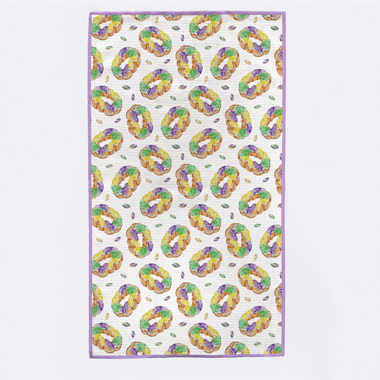 King Cake Pattern Organic Cotton Mardi Gras Kitchen Towel