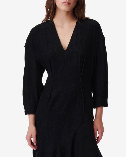 Velour Long Sleeve Ruffle Let's Dance Dress - Black