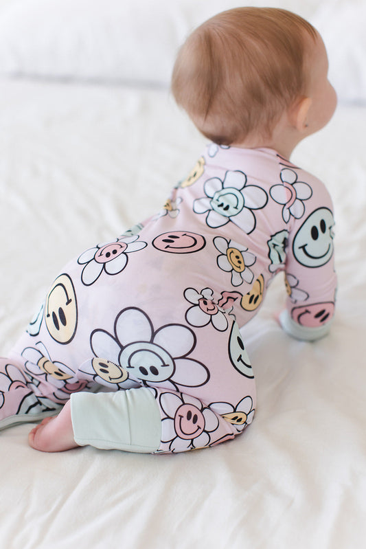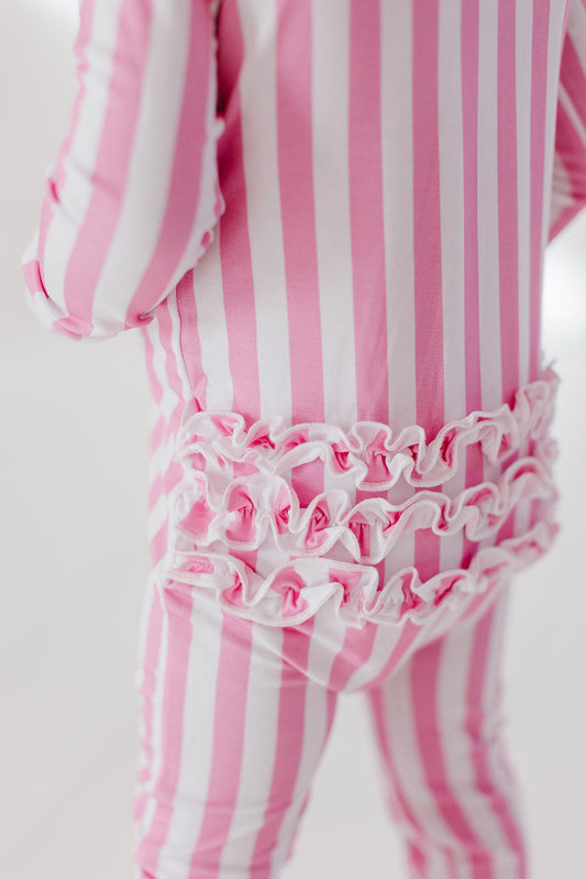 Bubblegum Pink Stripe Ruffled Convertible Footie