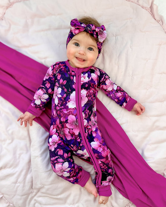 Cherry Blossoms | Convertible Bamboo Zipper Baby Pajamas