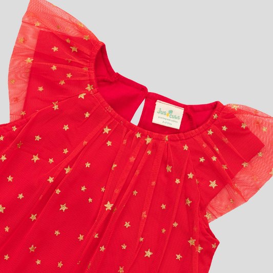 Elegant Red Starry Tulle Sleeveless Dress for Toddler