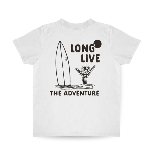100% ORGANIC COTTON LONG LIVE THE ADVENTURE TEE - WHITE