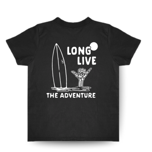 100% ORGANIC COTTON LONG LIVE THE ADVENTURE TEE - BLACK